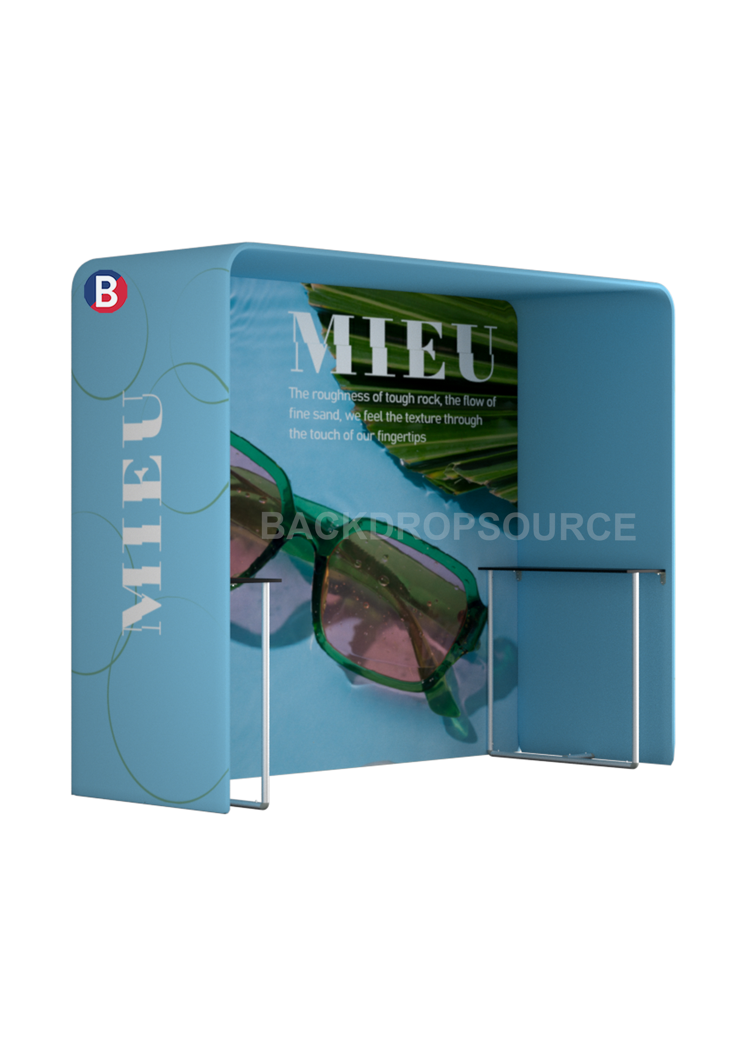 - • Built-in shelf offers practical space for product display or brochures